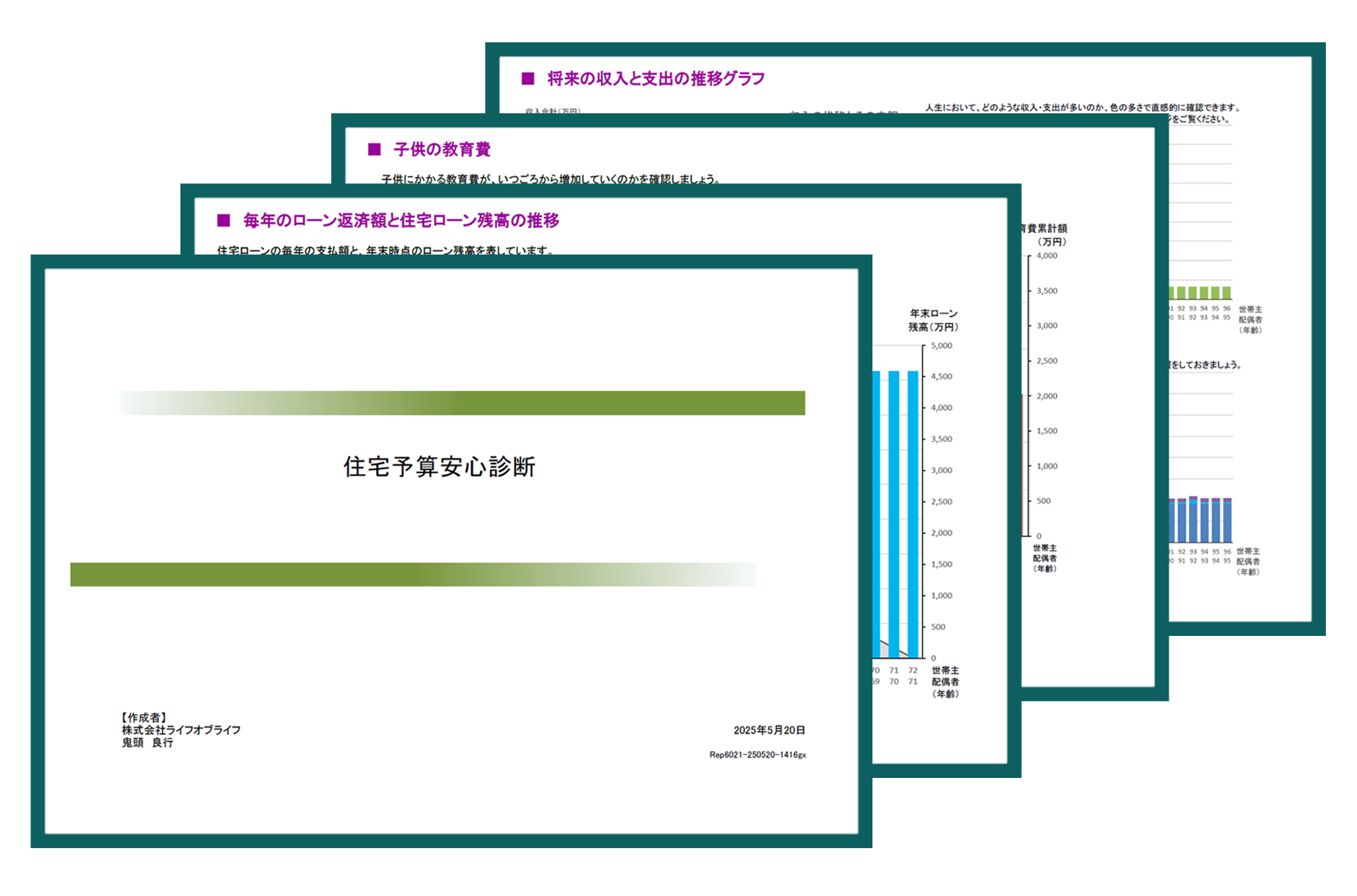 このような理由で私は、一生のライフプランを作成したうえで第三者の立場であなたに合った住宅予算をお伝えする「住宅予算安心診断サービス」を提供しています。