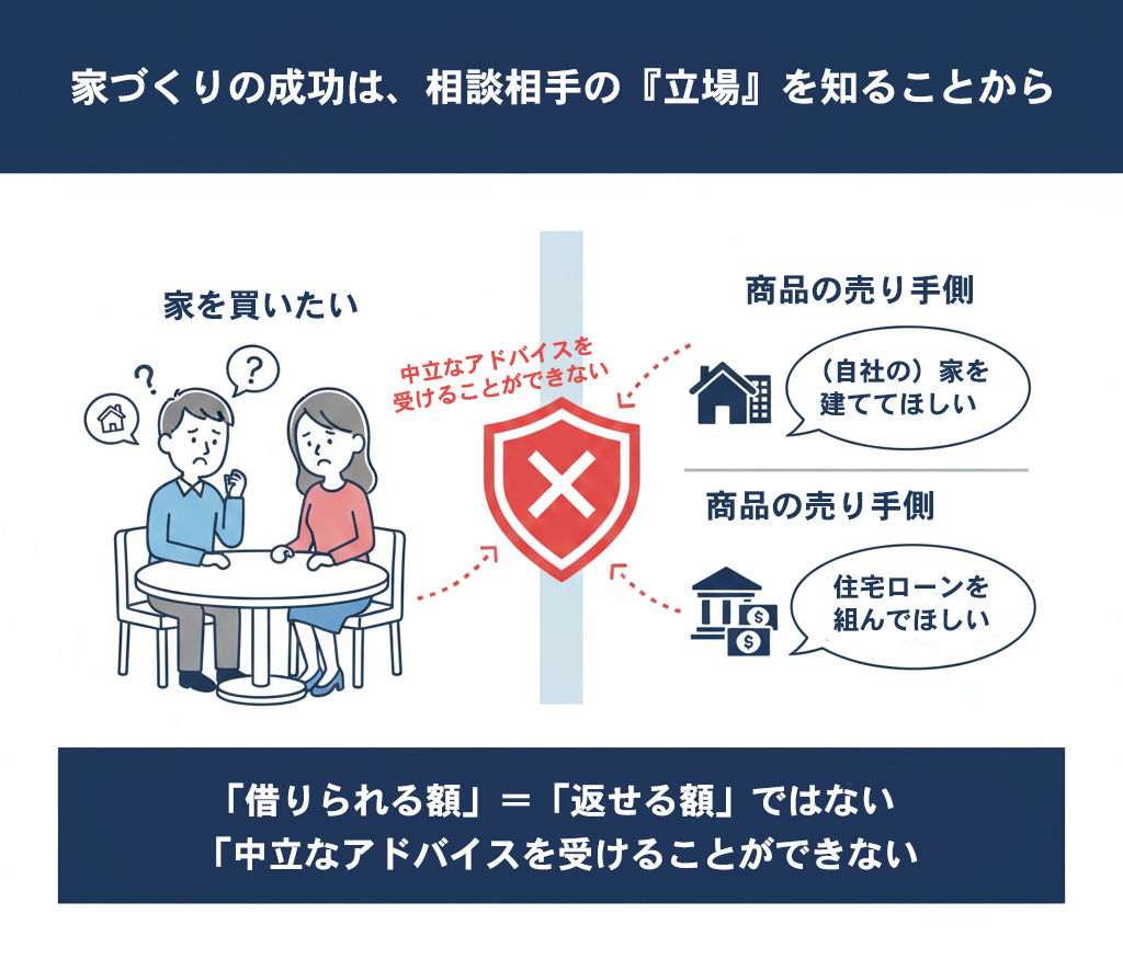 第三者の専門家に正しい住宅予算のアドバイスをして欲しいと思っても、商品を売らずに本音のアドバイスをする人が少ないのです。
