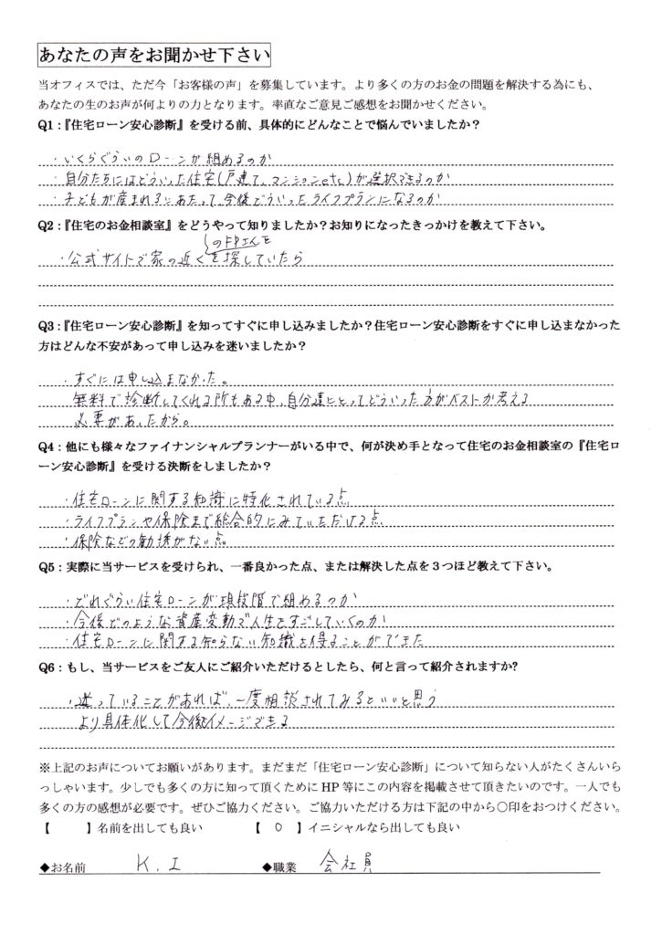他にも様々なファイナンシャルプランナーがいる中で、何が決め手となって住宅のお金相談室の『住宅予算安心診断』を受ける決断をしましたか?